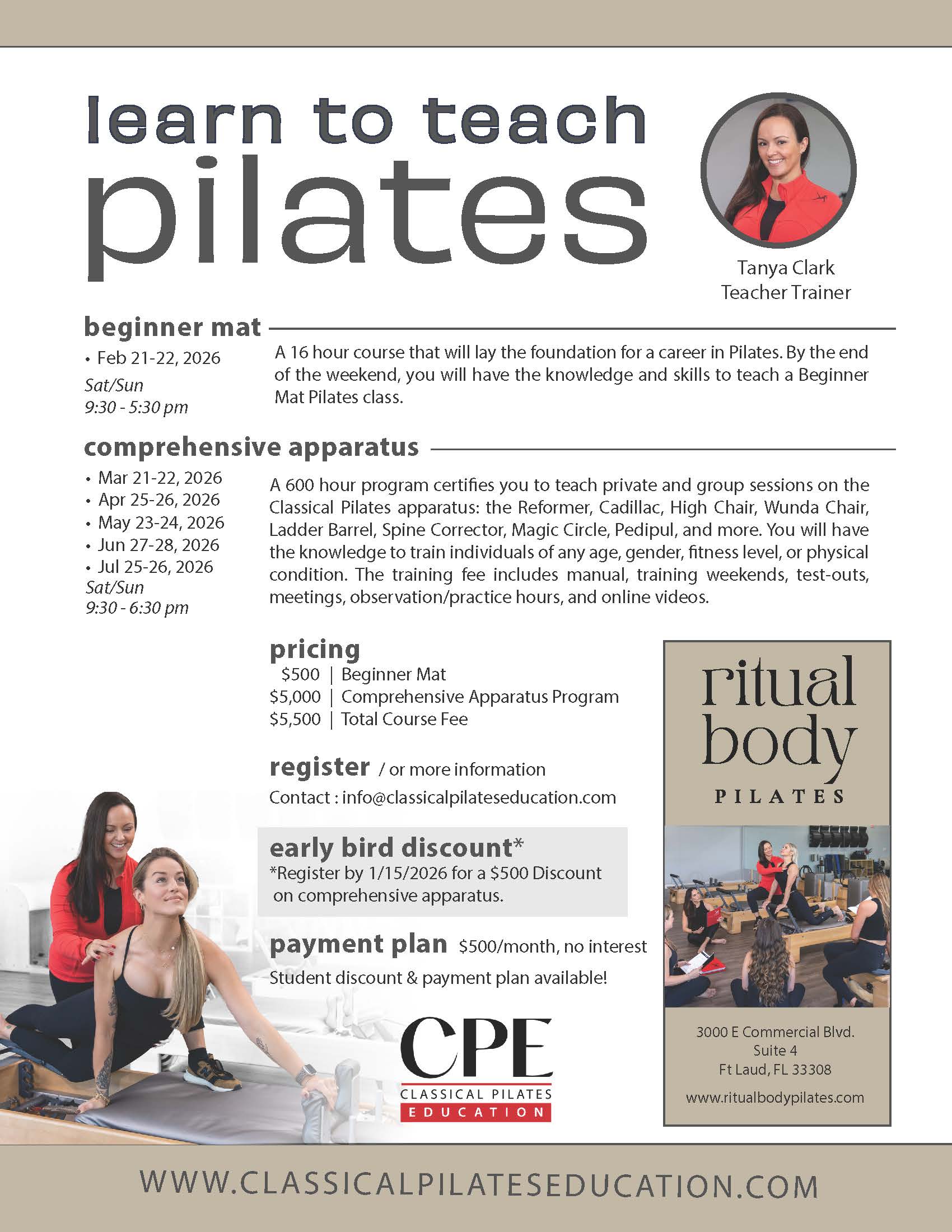 Ritual Body Pilates | Beginner Mat, $500, Comprehensive Apparatus Program, $5,000 |